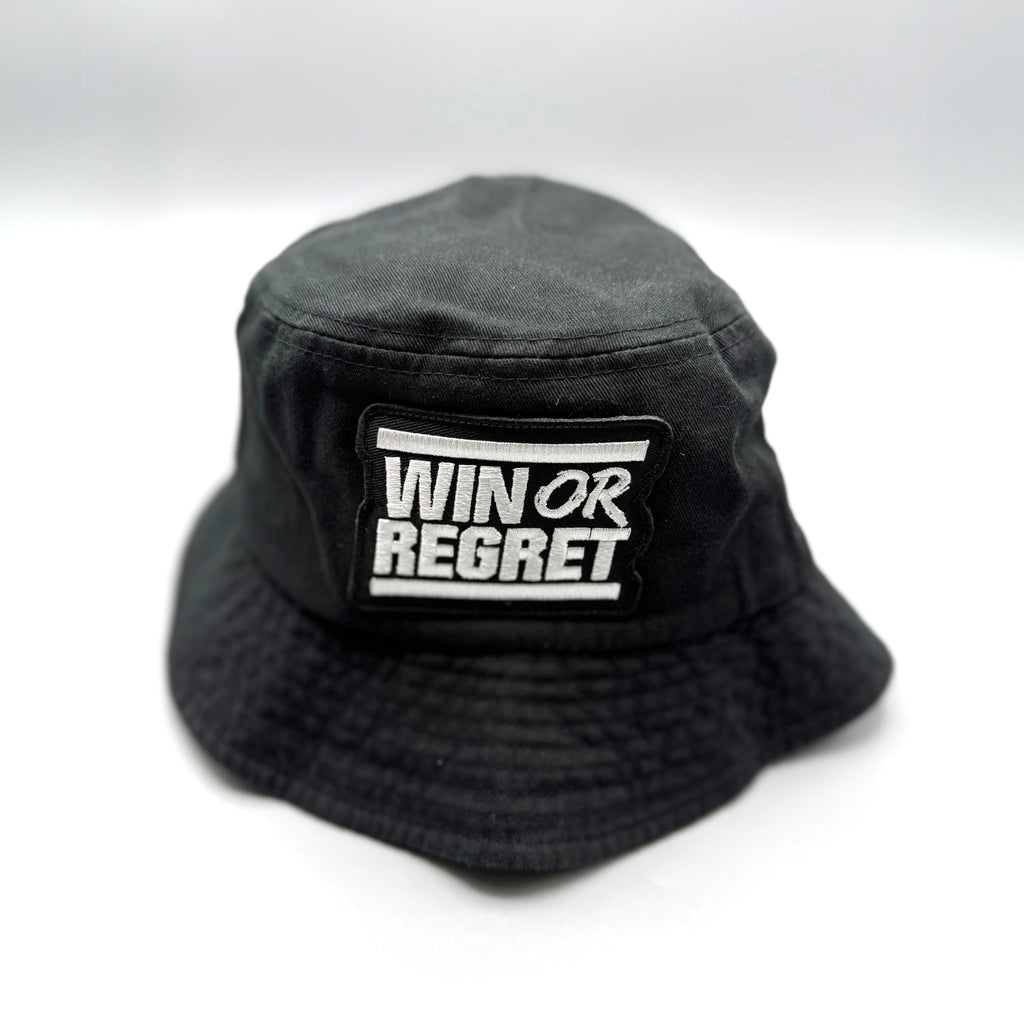Black Bucket Bat with embroidered Win Or Regret logo patch
